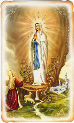 О наша Пані з Люрда, Беззаганнае Зачацце, Дзева чыстая і без граху, выпрасі нам ласку чыстасці, каб мы маглі процідзейнічаць усялякім схільнасцям да граху і малітваю супрацьстаяць усім пагрозам, якія нясуць свет, сатана і цела.